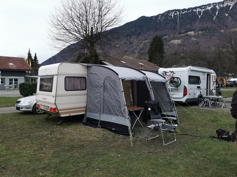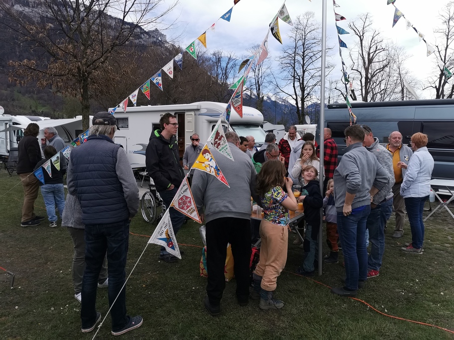 Am 29. März 2024 eröffneten wir erstmals unser Klubjahr mit der neu gegründeten Osterrally und so trafen im verlaufe des Tages alle 15 Einheiten auf dem TCS Camping Bönigen, welcher wunderschön und direkt am Brienzersee gelegen ist ein. Der Donnerstag gilt dann auch hauptsächlich der Anreise und dem Einrichten auf dem Campingplatz. Die Mitglieder, die schon am Nachmittag in Bönigen angekommen sind, genossen ein leckeres Abendessen im Dorfrestaurant. Andere Mitglieder kamen erst in der Dunkelheit auf dem Camping an, was aber keineswegs der Stimmung trübte. Im Gegenteil, die Vorfreude war gross und so verbrachten wir einen wunderschönen ersten Abend.
