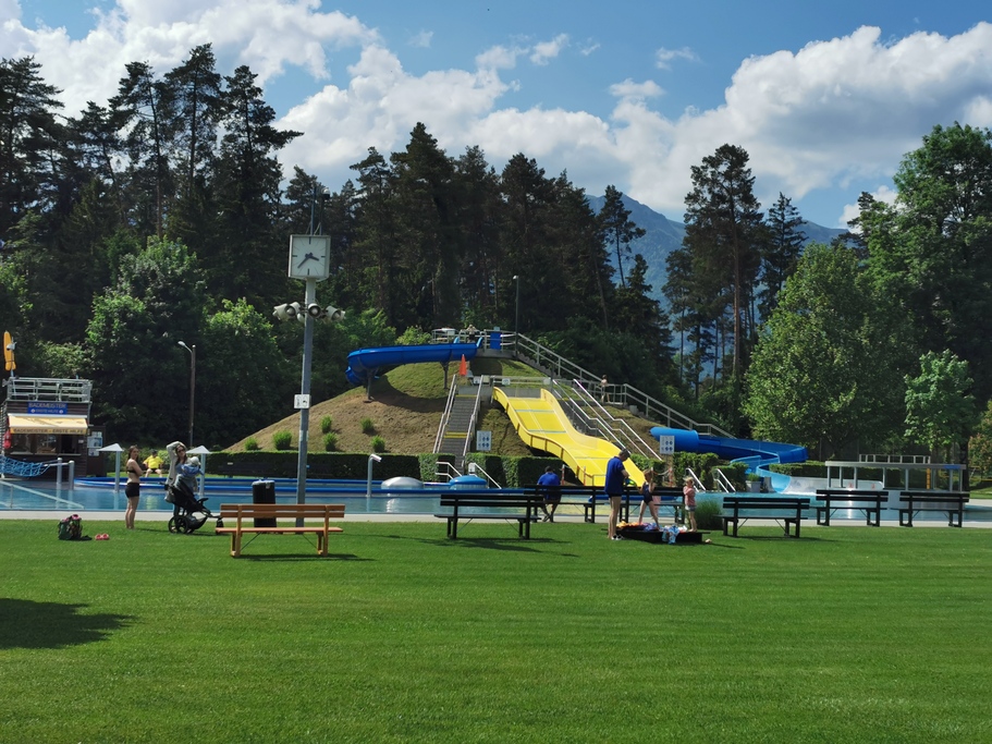 Vor dem Abendessen wurde ein kühles und erfrischendes Bad genommen. Die Kinder mit Ihren Mamis oder Papis stürmten die angrenzende Badi und freuten sich über das tolle Nass.
